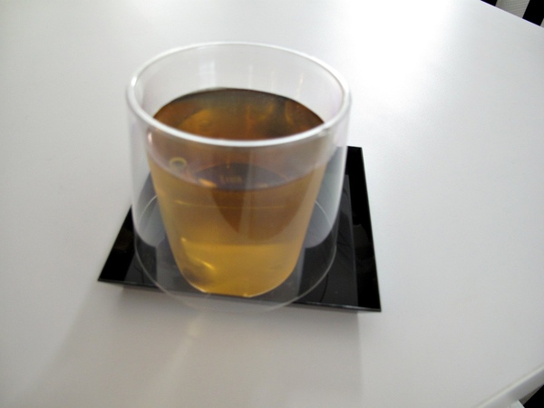這個塑料杯,不得不花點篇幅還介紹。是一個超高檔的設計,Philippe S+arck與IPI共同合作符合環保、兼具時尚的塑料餐具,稱作「Lux by Starck with Ipi」。底座的盤子有一個突起的小圓錐,而塑膠杯有一個內凹,所以可以把塑膠杯卡進去那個小盤上的圓錐,杯子就不會倒,好時尚的設計… 而且很貴… 很貴。不過因為這是免洗杯,所以也無法回收重複使用,所以可以給來賓帶回家收藏。但是我們居然忘了帶走!!!! 呃….