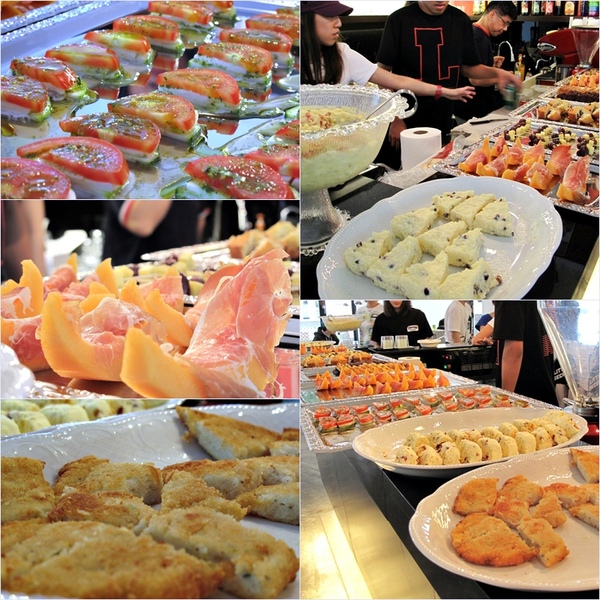 很精緻的餐點。有番茄起司、哈密瓜火腿、以及很多種小糕點。現在也有提供各種軟性飲料跟啤酒。